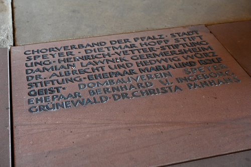 Auf der rechten Seite der Vorhalle des Doms werden durch einen Eintrag auf Bodenplatten Persönlichkeiten und Institutionen geehrt, die sich in herausragender Weise für den Erhalt dieser Kathedrale engagiert haben. Frau Dr. Christa Panhans wird hier mit einem Eintrag geehrt, der ihr besonderes Engagement für die Zukunft in Erinnerung hält.